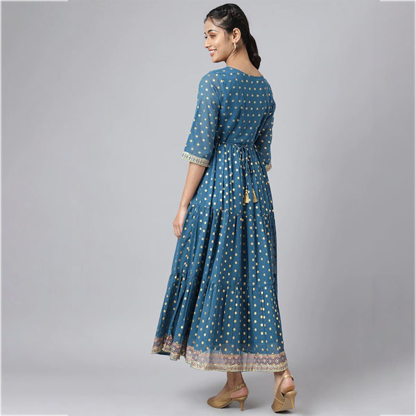 Blue Ethnic Motifs Maxi Dress